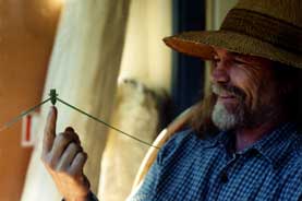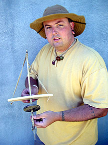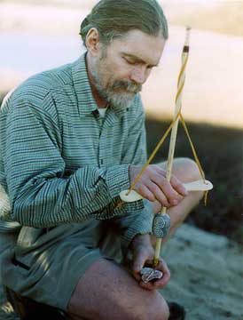 wood, a leather thong, a clay or soapstone flywheel, sinew, and