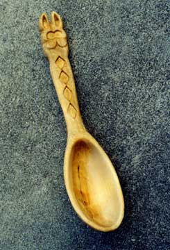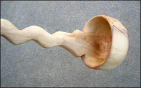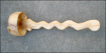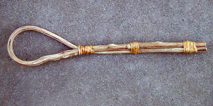 Looped stirring stick made from Coast live oak and lashed with Grey pine roots.