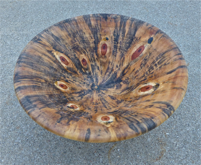 Manzanita butterfly patch and plug to stablize a crack near the rim.