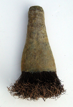 Arrow with mahogany obsidian arrowhead and dyed turkey feathers.