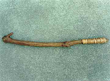 be wrapped to provide a better grip. The handle of the oak atlatl