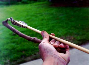 The atlatl was used for thousands of years almost worldwide. It had the advantage of lengthening the throwing arm of the hunter, thus more leverage to increase the speed of the dart. Despite the worldwide variations in the design of the atlatl, the basic components are still the same. They all incorporate a handle connected to a shaft with a spur.