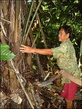 Chastened, I returned to the longhouse where an elder showed me how to gather the tinder (same kind as the fire piston) while harvesting a millionaire’s salad for our meal. Our fresh heart of palm (Arenga undulatifolia) was much better than the one found in restaurants.