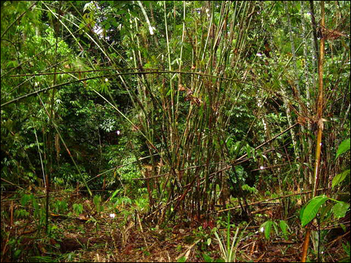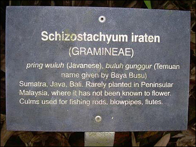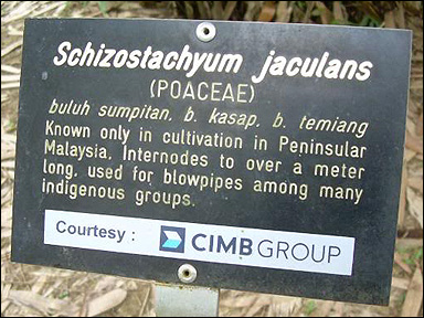Tom had an idea that it might be one of the Schizostachyum species. The internet databases on bamboo did not clearly state where the possible species were found. But one Australian site did have a rough phonetic transcription of the local names in Malay, Javanese and Sudanese from hundred year old Dutch botanists’ notes. However. there are over 50 tribal languages in Borneo, they do not speak Javanese or Sudanese, and none of the explorers mentioned the tribe of their guides or the local name for the bamboo. Every native I asked looked blank.