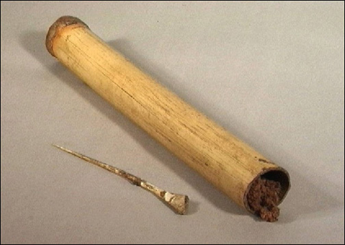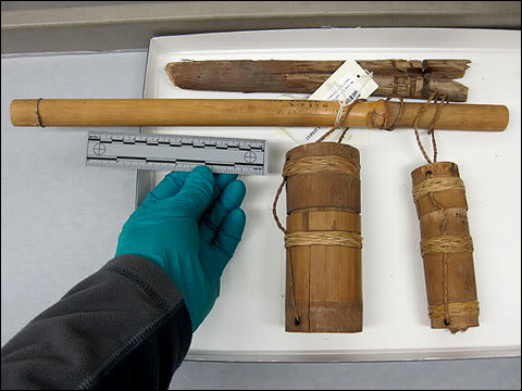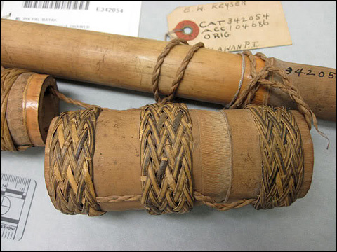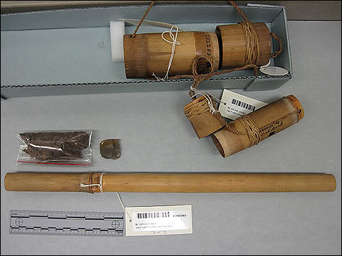 Photos of bamboo strike-a-light kits from the collection of the the National Museum of Ethnology (Rijksmuseum voor Volkenkunde) in the city of Leiden in the Netherlands: