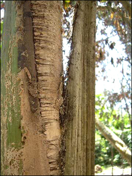 On further note, I need to make a correction to an earlier statement regarding culms and silica content. I said that the base of a culm matures first. This is true. I then said that because it matures first and holds the weight and torque of the entire culm, it is the strongest. This is also probably true BUT, I made the assumption that this would also be the area of highest silica content and this is not true according to The Anatomy of Bamboo Culms by Walter Liese. You can read it using Google Book Search; page 88. I quote, "Silica is a major constituent of the epidermis with values between 1.5 % (Bambusa vulgaris) and 6.4% (Schizostachyum lumampao). It consists of small crystals of silicon dioxide and is mainly localized in the shorter epidermal cells. . . . . The silica content increases towards the upper culm parts." So, this is something else to think about when searching for strike-a-light culms.