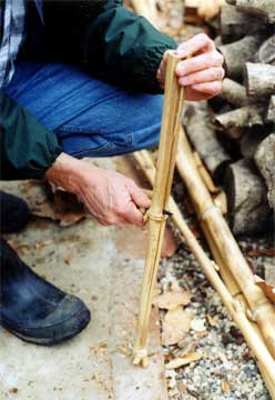 diameter bamboo was split lengthwise about 2/3 of its length.