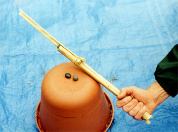 up one of the bamboo, he began to relate to me a simple clay throwing,