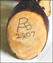I like to make them from a piece of a branch with contrasting bark remaining. Specific examples are birch, wild plum, willow and red dogwood. For best results at keeping the bark adhering to the wood, you should probably not cut the branches in the spring when the bark separates easily from the wood. The originals I have seen were made from solid alder and did not have any bark. The wood will be easiest to carve when it is still green.