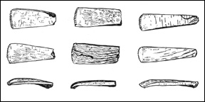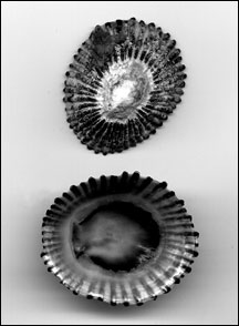 Also, large Conus shells were cut and formed into grating implements with a serrated end. The coconut shredders in the illustration above are from the Bishop Museum in Honolulu, Hawai'i.