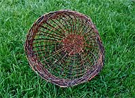 The elegant combination of functional purpose and aesthetic beauty can be found in a whole shoot, twined willow basket. A basket made of willow has its beginning in a process called coppicing or pruning. Coppicing is a practice of environmental management used by Native California basket weavers. It involves pruning a plant back to its base and removing the weak shoots to encourage vigorous growth. The plant is allowed to regrow from the cut stumps. Willows are coppiced to stimulate the propagation of long, slender and flexible branches or shoots. The willow withes are utilized in the warp elements (lengthwise threads) and weft elements (horizontal threads) of the basket. Coppicing provides an environmentally sustainable source of willow withes through periodic cutting, which actually prolongs the life of the tree. Besides preserving traditional skills, pruning creates a rich mosaic of habitats, attracting a diverse range of flora and fauna.