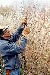 Not all willow withes are as flexible as Sandbar or Hinds willow. To test a willow to see if it is suitable for basketry withes, pick a thin branch or shoot (preferably from one year's growth and no side branches) and try tying an overhand knot without cracking it.