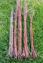 "If the shoots are gathered in the dormant season (from leaf drop to bud swell), the bark will adhere tenaciously. If they are harvested in early spring (just after bud break), the bark slips off easily. By mid spring, anything that was not cut will begin branching out and will become less desirable. We prefer to harvest during the dormant season and weave with the bark on. This way the shoots are less prone to cracking and have greater wear resistance."