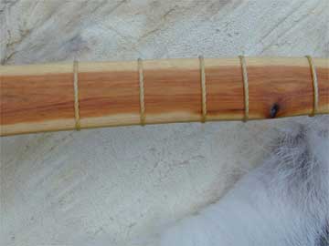 One of the most common modes of failure of self bows which are made from imperfect wood is rupture of the fibers on the back of the bow. Hence the ancient admonition not to cut through wood fibers on the back of a bow. That rule can be broken if you are going to glue a sinew backing onto a bow. Pope (5), schooled in the ways of traditional American and British bowyers was surprised to see Ishi virtually ignore that rule when making his short (42 in.) sinew backed juniper bows.