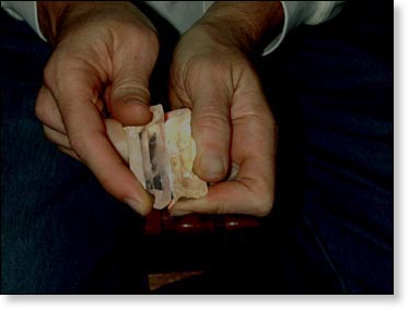 Choose crystals large enough to get a hand on and that each have at least one flat side.