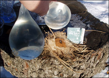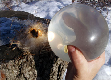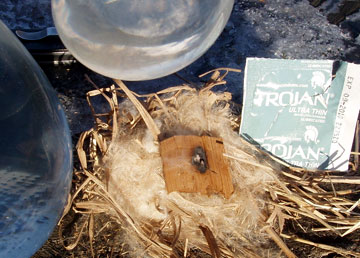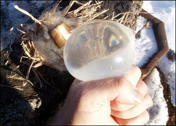 off the latex and use the ice sphere to start a fire.