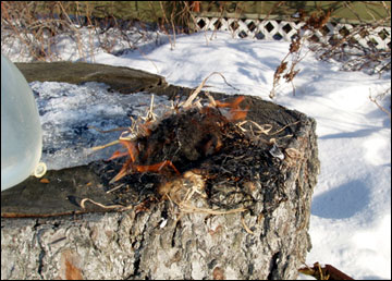 Setting the water balloon on top of a coffee mug in the freezer