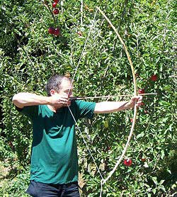 If you have never made a bow, it would be a good idea to do some research. There are some good books on the subject, and there is some very good information on the internet (see other items on this site). If you want to start making a bow without doing the research you can still succeed. I would suggest that you select dense, straight, blemish-free wood. Generally a bow should be over twice the length of your draw length. A beginner might like to start by making a bow at least as tall as him/herself. You can "rough cut" the stave while it is still green, but you should not start to bend the stave until it has become completely dry. A wider bow is less likely to break than a narrow bow of the same draw weight.