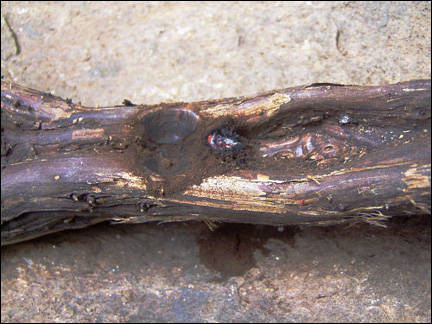 The first pit will become a char collection point when a second pit is started adjacent to it. As the second pit enlarges, it will break through to the first pit, acting as a notch. You can make consecutive pits along a line to continue the notching process with each fire making effort. You can control the pit positioning by leaning the spindle as needed while you spin it.