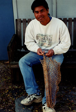 For a biography of Dino, access The PrimitveWays Clan webpage. He is a graduate of California College of the Arts (Oakland, CA). Visit THE GALLERY and view his artwork and replicas. Access an interview of Dino produced by Lowe + Helzer entitled "Tule Basket Weaving".