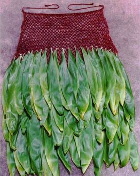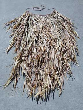 Another row of ti half-leaves were added on top of the bottom row until the layered rows reached the top of the cape.