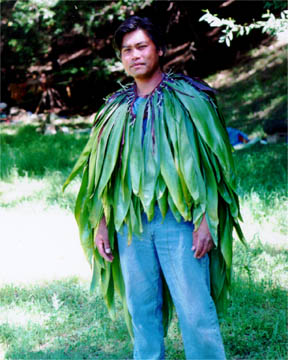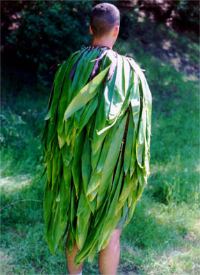 Over time, the constant use, the winds, and the elements shredded the ti leaves on the cape. The green leaves eventually turned brown. This did not diminish the practicality of the ti leaf rain cape.