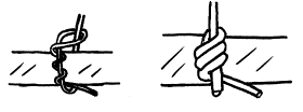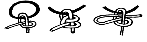 It's been my observation that every practicing abo should have several knots memorized, ready to be used anytime. If you are making primitive cordage, then learn a few knots to go with it. Someone once asked me why one could not use the same knot in every situation. The answer is that different knots will fit different situations. A line may be tied onto its own cord, or a different line, onto a post, ring, fishhook, or animal. The strain may be steady, or intermittent, and from one angle or many. Sometimes the knot is only to hold for a short time, or it may be semi-permanent. Some knots are easily untied when wet, or with one hand. Some knots are stronger than others. The physical properties of the cord will also be a determining factor. Ease of untying may or may not be important. Many things should be considered when selecting a knot for a particular job.
