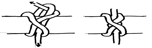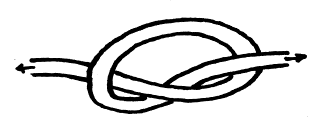 Overhand Knot: Used as a stopper knot or as a sewing knot. If you learn this knot you will have the basis of several other knots. The Overhand loop is the same knot with the line doubled over. Related knots not detailed here are the multiple overhand knot, the Carrick bend and the Hunters bend.