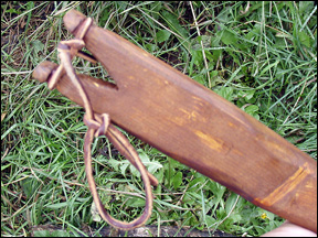 The short loop type atlatl is the absolute easiest to make -- just a stick with a cord tied on and a loop in the end. With a shallow end nock or side nock in the end of your dart, the atlatl is ready to go. The disadvantage of this type of atlatl is it is not as fast loading as a hook type, but accuracy and dart speed are equal to hook types.