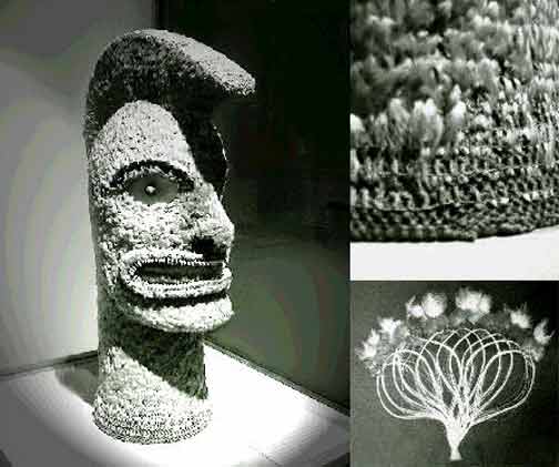 Carefully crafted olona fibers also made up the net base that provided backing for the exceptionally fine feather cloaks, ahu'ula, as well as for some of the feather helmets, mahiole, and for ti leaf capes, ahu la'i. Kahili feather standards were wound with olona cord, and olona cordage was superior for tying adz heads to hau wood handles.