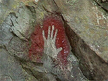 Many of the beautiful rock art images found in the European caves as well as the myriad of hand stencils from around the world, were made by spraying the pigment out of the artists' mouth sometimes through a tube. Any hollow tube of approximately .25 inch (6 cm) diameter will work; bird or animal bones, bamboo, reeds etc. You can also blow the pigment out of our mouth without using a tube. Although I haven't found this technique as controllable, the Australian Aboriginal people still use this method today. (!Caution! When spraying any pigment out of your mouth, make sure your binder does not contain any harmful materials, i.e.: poisonous or toxic plant saps, juices, etc.)