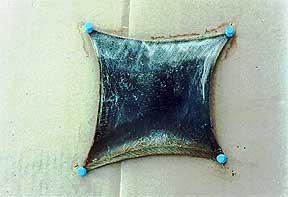 As the shark skin dries, it will shrink on the cardboard and may pull the tacks loose. Inspect the skin every now and then and remount any loose tacks.