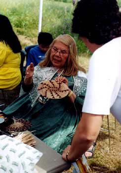 at the Maidu Interpretive Center in Roseville, California. Julia is a basketweaver and cultural demonstrator.