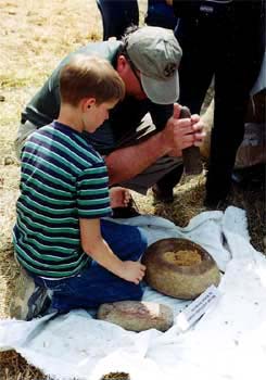 Acorn processing demonstration at the Maidu Interpretive Center in Roseville, California.