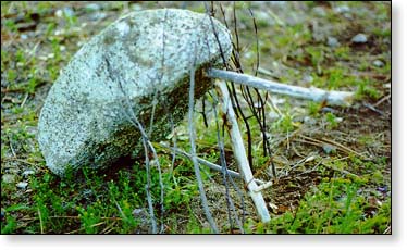 A Paiute deadfall with twig barriers to guide the animal to the bait.
