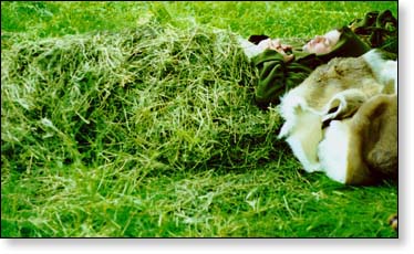 Bill sleeping in his grass bedding at the Rattlesnake Rendezvous in Sunol, California.