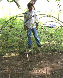 Gene taught how to construct a willow shelter at the Rattlesnake Rendezvous.