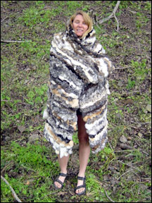 Rabbitskin blanket being displayed at the 2005 Rattlesnake Rendezvous event