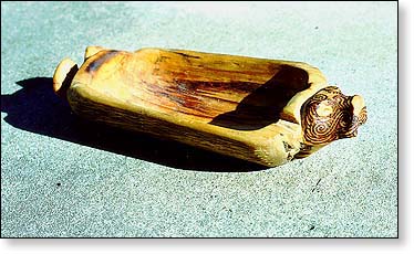 A wooden bowl that was hollowed out using hot coals.