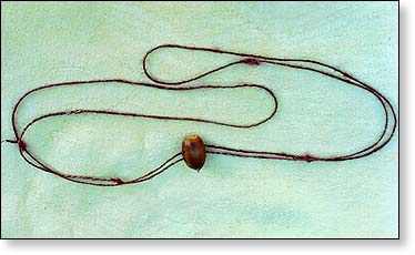 Acorn toy buzzer and flax cordage. The cordge was twisted and