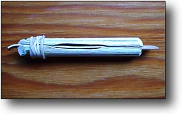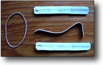 Primitive hand made quail call using rubber bands (cordage and grass can also be used). Cover hole with your mouth and blow. Pull on rubber band or grass blade to change notes.
