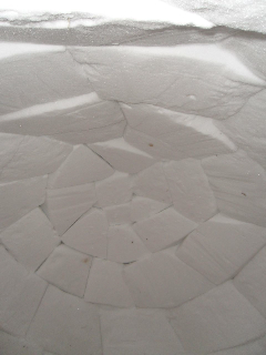 I also make a point of never quarrying the blocks from where I am putting the igloo. I did this once and I could not reach the ceiling from inside to stabilize that last block! This also happens if you start too large or don't slant the blocks inward enough.