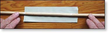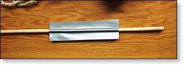 At the 1998 Rabbit Stick Rendezvous (September in Rexberg, ID) Scott Jones and I were engaged in a learned dialog on the virtues of river cane, Arundo donax and Japanese arrow bamboo as shaft material for arrows and atlatl darts and the importance of tuning the oscillation period of the dart to match the thrower. One of us, I don't remember who, casually suggested that it would be easy to make a temporary fletch out of duct tape for a dart. It really works!