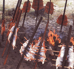 The sight of crispy golden salmon roasting over hot coals is enough to stimulate anyones taste buds. The aroma is so overpowering. The taste is incredibly delicious. This slow process of cooking salmon on cedar stakes will tantalize all your senses as you feast on this simple and scruptious meal.