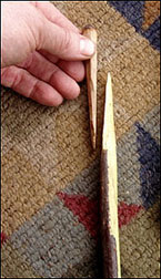 So, how do you join a short dry piece to a longer green, straight stick, with just a knife or a sharp rock? It puzzled me for a long time. I wanted something that could be done in the Alaskan bush, with a minimum of tools or none. It had to be simple and very reliable. Then I remembered the scarf joint. The scarf joint is a classic wood working method to increase the length of lumber in boat building and other wood working trades. The joint is usually glued or riveted. It is basically two long mirror image wedges lapped together. The ratio of length to width of joint is 8 to1 up to 12 to 1. It can be made in regular boards, ply wood or even round doweling. I made a scarf joint on two broken arrow shafts. I had bound them together with a thin strong cord using a whipping type of knot. I did not use glue. The two arrow shafts lined themselves up as I wrapped the cord around. When I finished, the joint was stronger in both axis than the rest of the arrow. Awesome . . . . but wait, it gets better. You could pull it apart and put it back together a dozen times, like a socket. The wrapping stayed together when I pulled the shaft out.