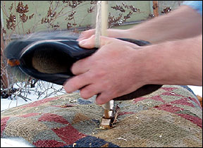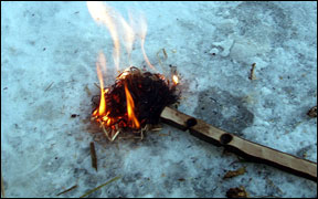 Even though I'm a big tough Alaskan plumber, who works with his hands every day, it just hurts too much bare handed. I do have some scar tissue on my palms if that makes a difference to those purists out there. I've showed six different guys, who have never even done a bow drill, this method. Each person was able to twirl up an ember the first time. So, go out there and give it a try!