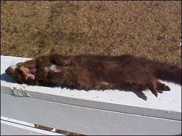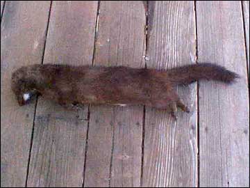 Two days ago when I chanced upon a road kill mink, it gave me the opportunity to see if I could do the same kind of skinning on a smaller scale. The fur at this time of the year (mid-March) is a bit past prime, but the mink was in OK shape. It had a crushed abdomen and a slightly beat-up tail and face.
