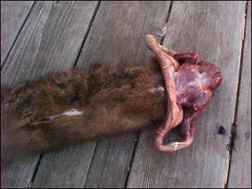 For the road kill mink, I made the cut in the throat, and then loosened up the skin from the meat all the way around the neck.