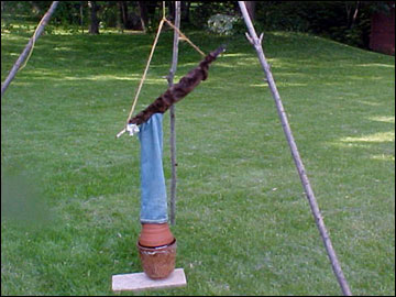 Smoking the mink was a real challenge. This was the first attempt, channeling the smoke into the neck opening. I am not really sure why this did not work, but the result was very uneven color to the flesh side of the pelt.