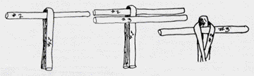 2. Center a short tule (#2) over the middle of a long tule (#1), then fold the long one in half.